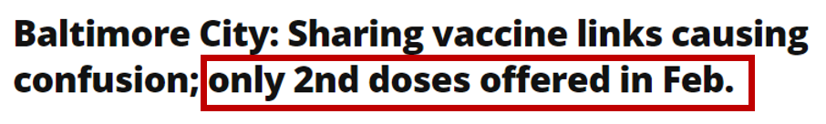 Case in point: Following Baltimore City’s lead, Maryland’s state health secretary told health care providers that they should” hold in reserve enough COVID-19 vaccine to administer second doses to people who have already received one shot — rather than using their supply to give more people their first inoculation.” Source
