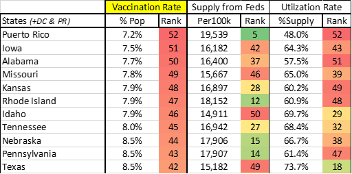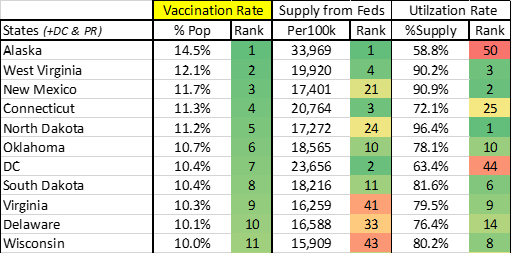 > Each state’s utilization of the vaccine that has been supplied by the Feds (a measure of “asset” efficiency)
