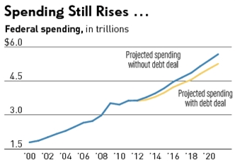 And, don’t forget: “A federal budget compromise that was hailed as historic for proposing to cut about $38 billion (with a B) would reduce federal spending by only $352 million (with an M) this fiscal year, less than 1 percent of the bill’s advertised amount, according to the Congressional Budget Office.”