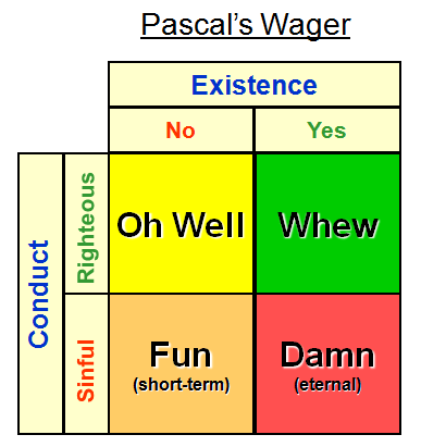 One of the few things I remember from Philosophy 101 is Pascal’s Wager.
