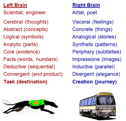 Yesterday’s post prompted some questions re: what exactly is left-brained and right-brained thinking, so …