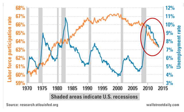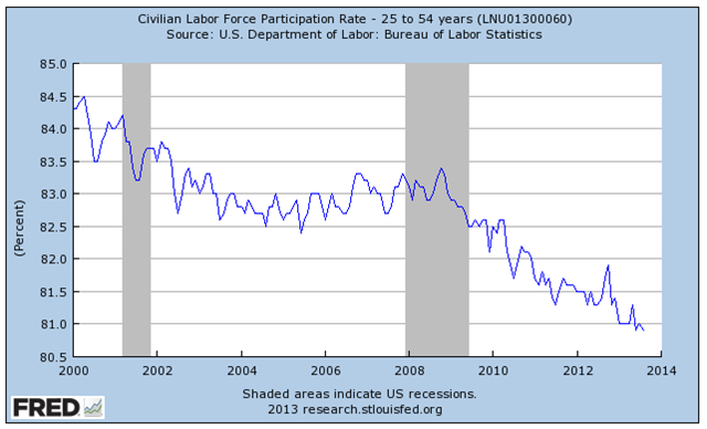 More specifically, the LFPR is down more that 4 percentage points since the financial crisis hit.