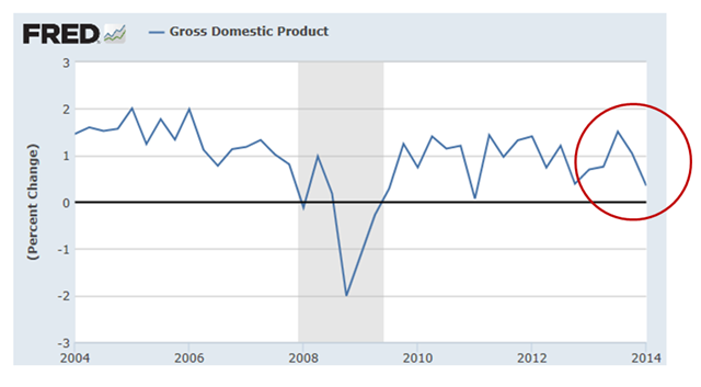 Earlier last weeks, the Feds reported that GDP was essentially flat in the first quarter … only increasing by 1/10th of a percentage point.