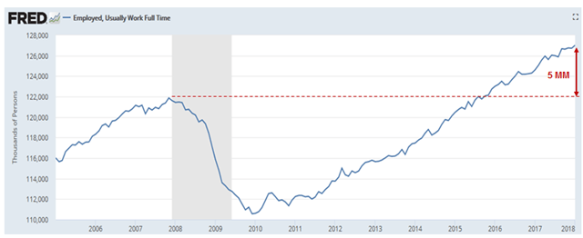 Approximately 127 million workers are now employed full-time …. that’s an all-time high … up 16 million from the financial crisis low point … and up 5 million from the pre-crisis high.