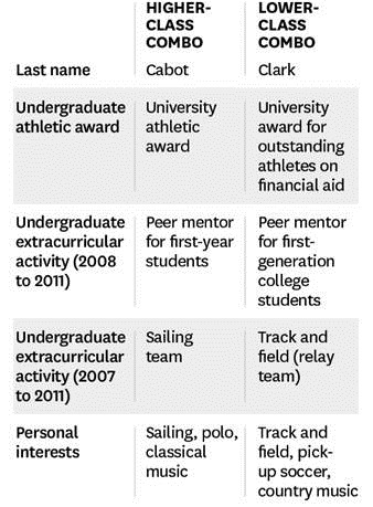 To “signal” social status, last names were either prestigious sounding “Cabot” or more common “Clark” … and commonly used and and often required portions of resumes were varied: awards and extracurricular activities: