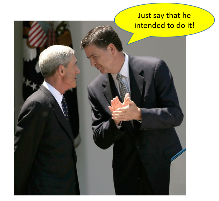 Applying Jimmy Carter’s logic, Mueller argues that presumed intent without action is sufficient cause to deem obstruction.