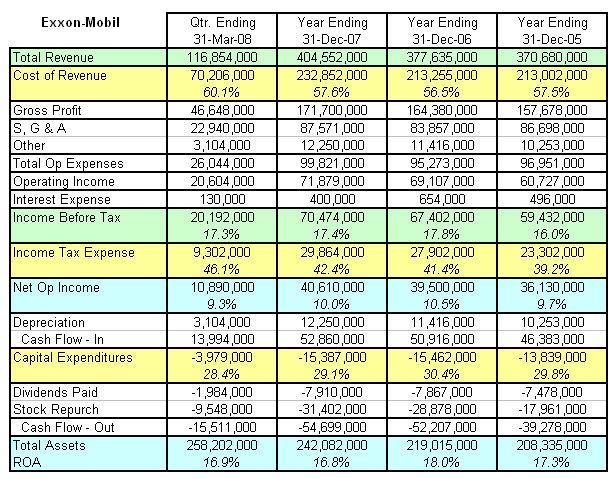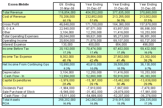 3) Taxes: Exxon paid over $90 Billion in taxes from January, 2005 to March, 2008 — an effective tax rate over 40% (46.1% in Q1 of this year)