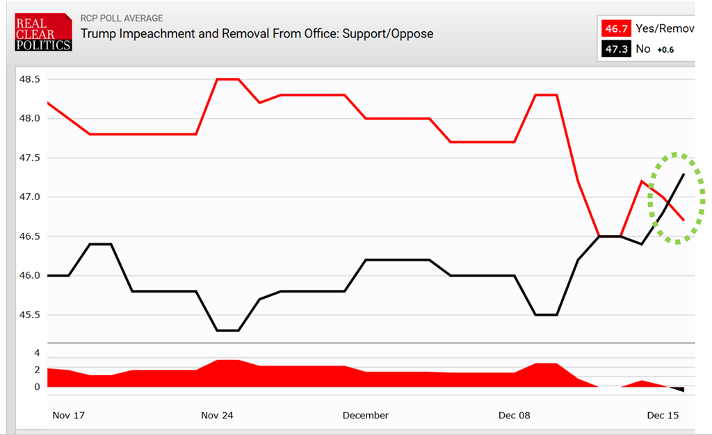 Well, looks like it’ll be partisan support and bipartisan opposition in Congress … and by the time the vote is taken next week, a plurality of public opposition to impeachment and removal.