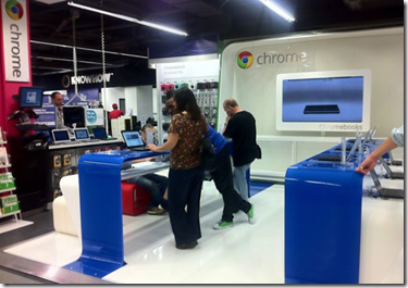 The 285 sq. ft. pop-up store within the Currys and PC World superstore on Tottenham Court Road “only sells Google’s (Samsung) Chromebook laptop and a few accessories such as headphones” and “will run for three months up to Christmas” …