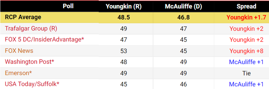 Yesterday, we posted that education issues (e.g. curriculum and “social environment”) are front and center … and may work to Youngkin’s advantage.