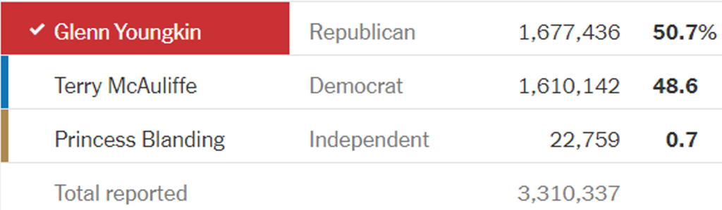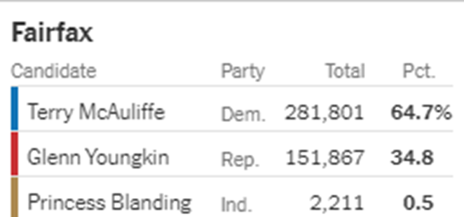 In a prior post, we highlighted the importance of Northern Virginia counties in national and statewide elections … especially this year, with McAuliffe vying with Youngkin for governor.